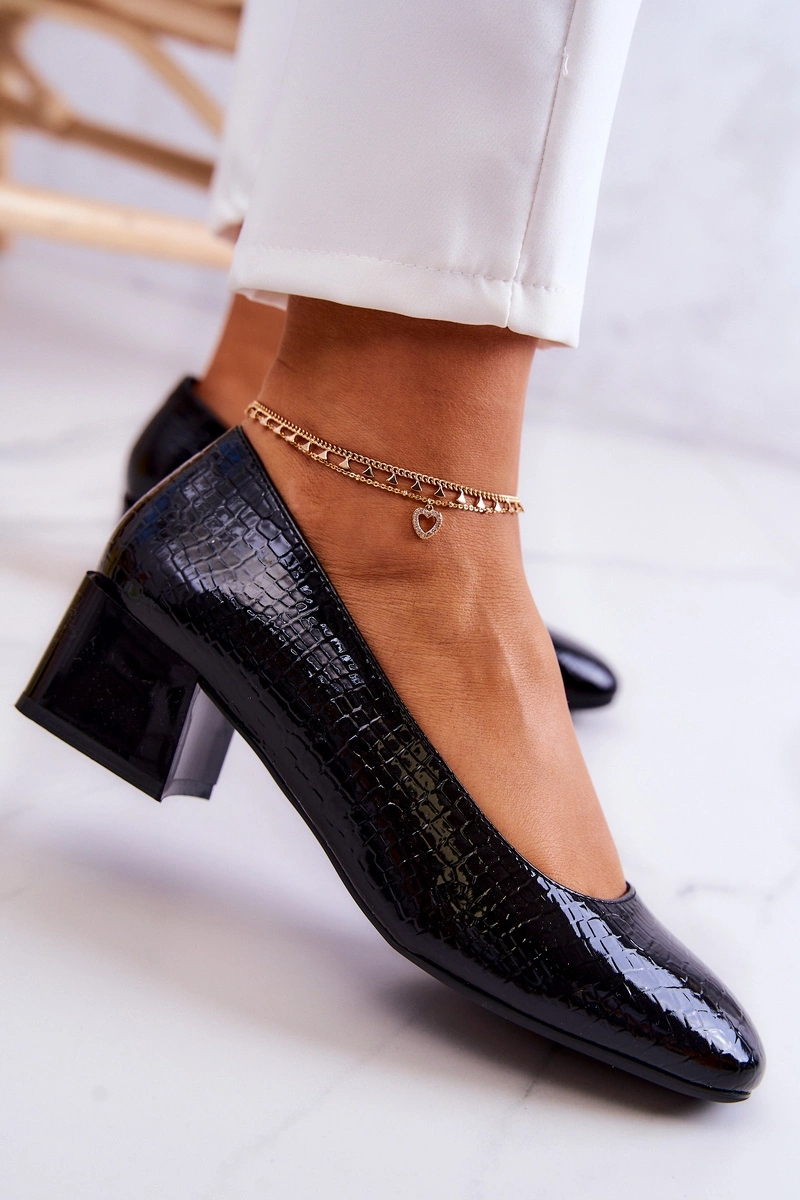 Skórzane Wężowe Czółenka Czarne Mesquite