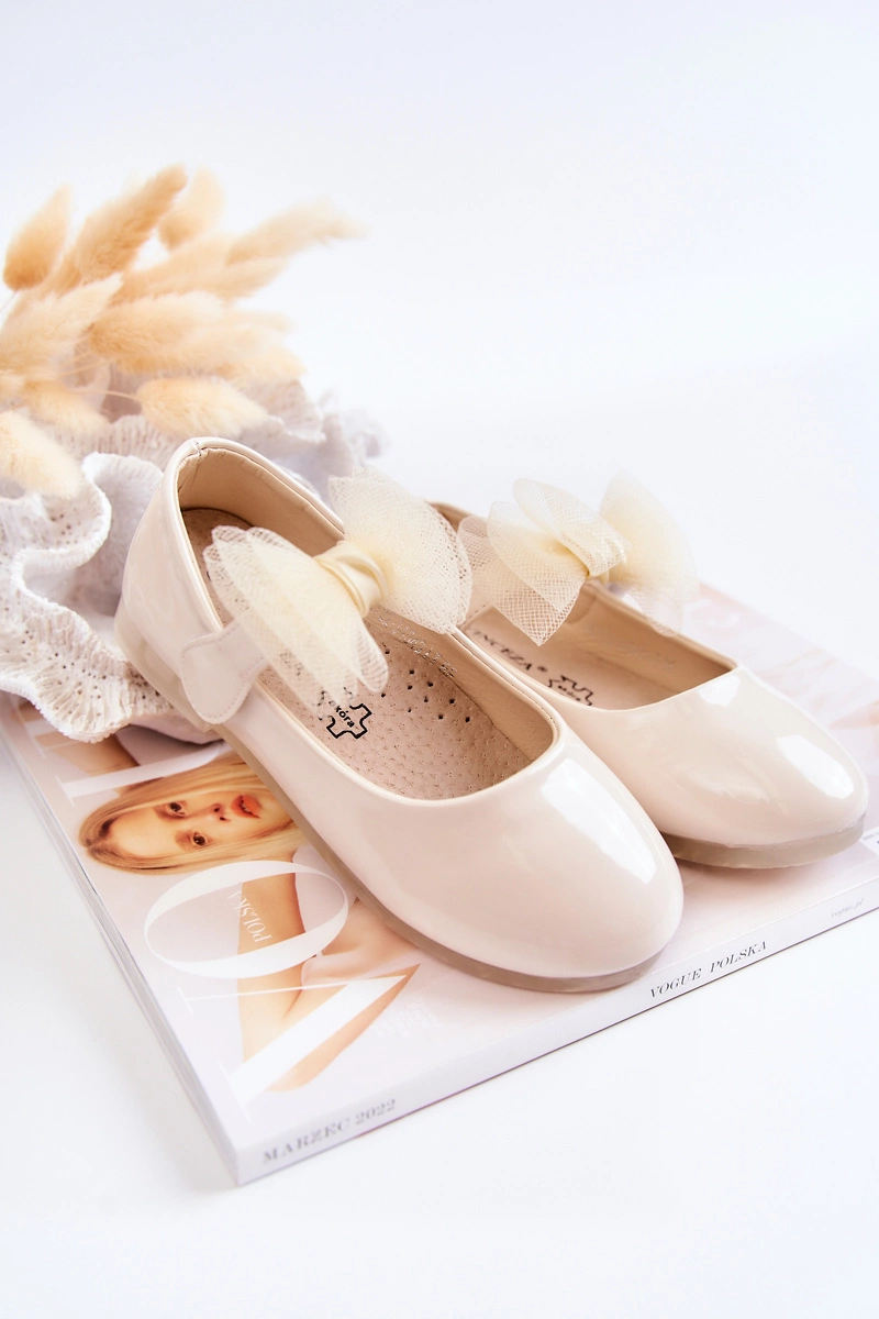 Lakierowane Dziecięce Balerinki Na Rzepy Jasnobeżowe Carla