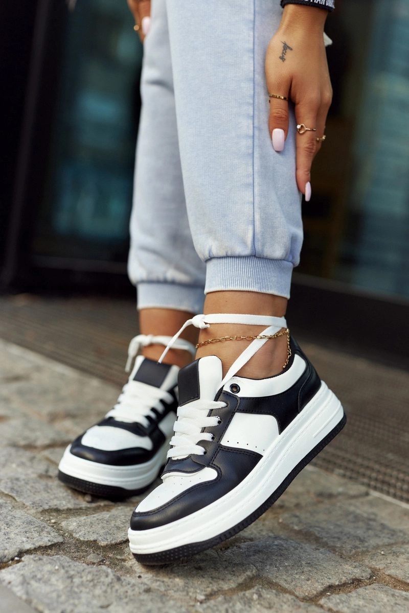 Jeśli cenisz sobie styl oraz wygodę na co dzień, koniecznie sprawdź naszą ofertę na sportowe obuwie! Wykonane z eko skóry. Sneakersy na platformie, z podeszwą wykonaną z tworzywa sztucznego. Modne zestawienia kolorystyczne, z którymi stworzysz wiele ciekawych stylizacji. Model wiązany na płaskie sznurowadła. O komfort zadba miękka, materiałowa wkładka, którą dodatkowo można wyciągnąć. Przód oraz boki obuwia są delikatnie perforowane, co zwiększa przepływ powietrza wewnątrz obuwia. Przy wyborze rozmiaru prosimy kierować się tabelą rozmiarów.