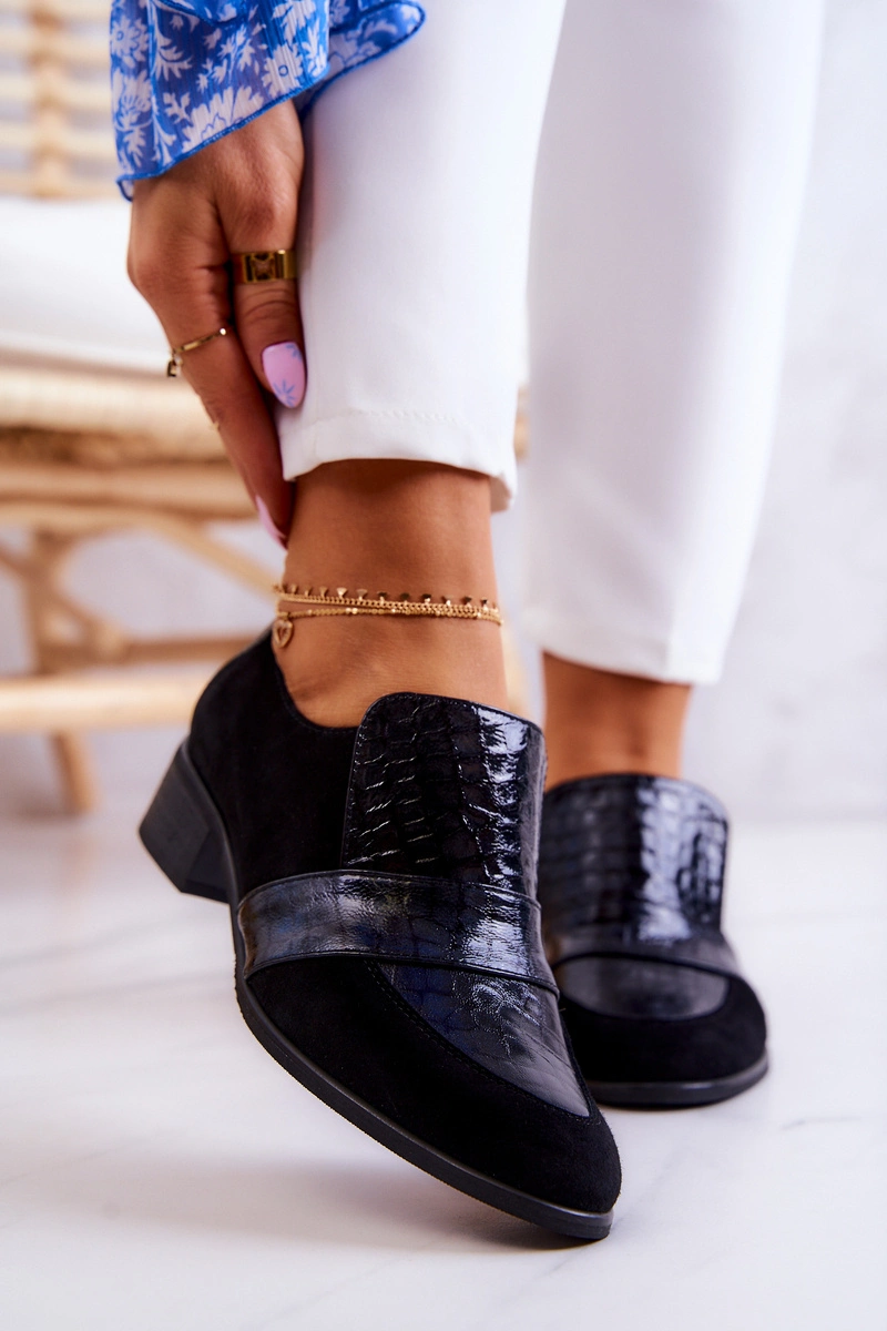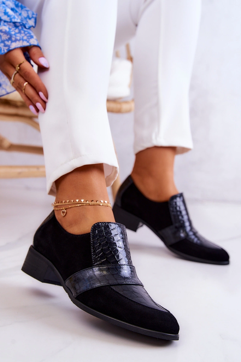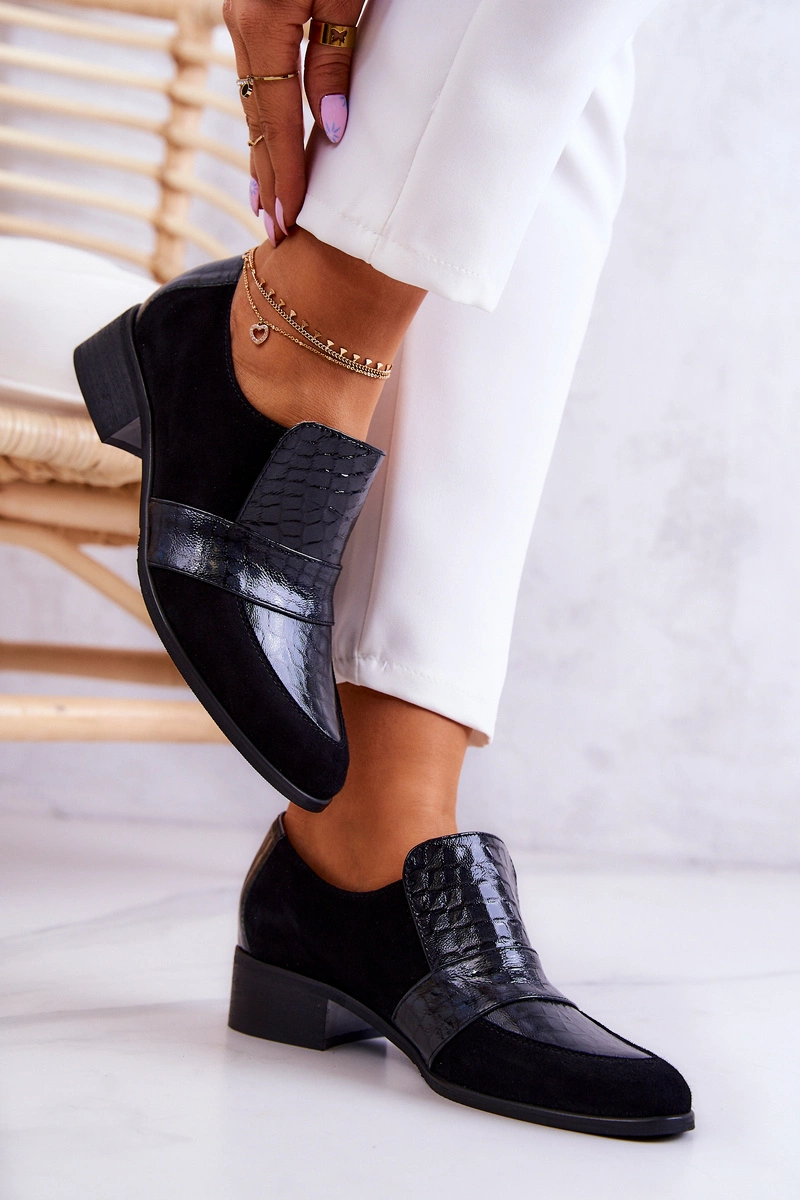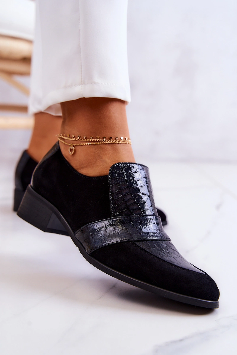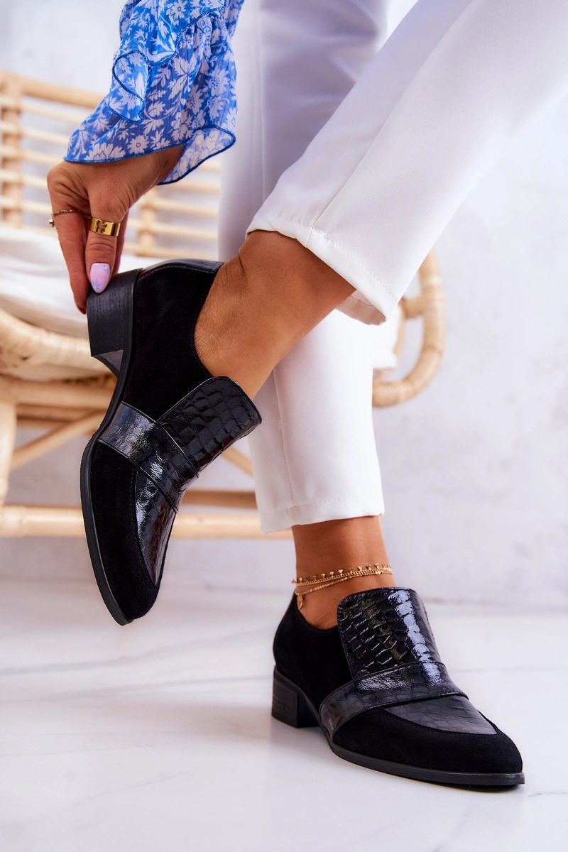 Zamszowe Półbuty Wężowe Czarne Mariene