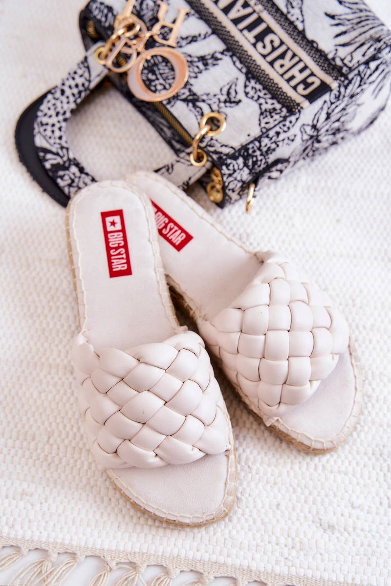 Skórzane Plecione Klapki Big Star JJ274922 Beżowe