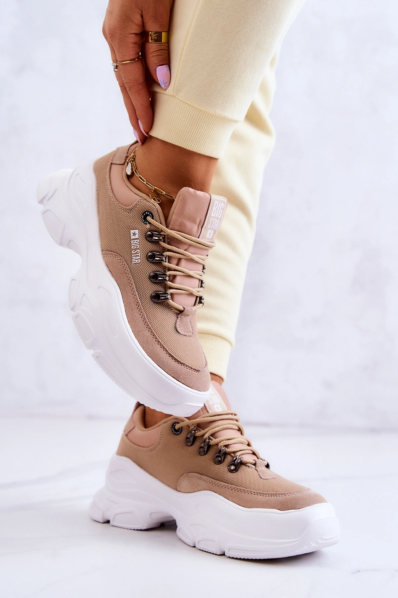 Damskie Sportowe Buty Sneakersy Big Star JJ274A222 Beżowe