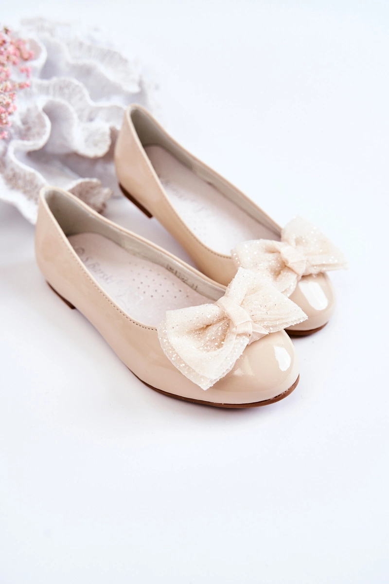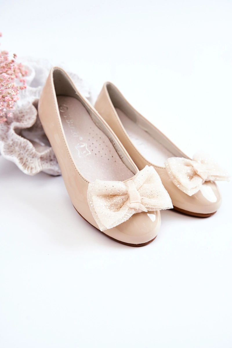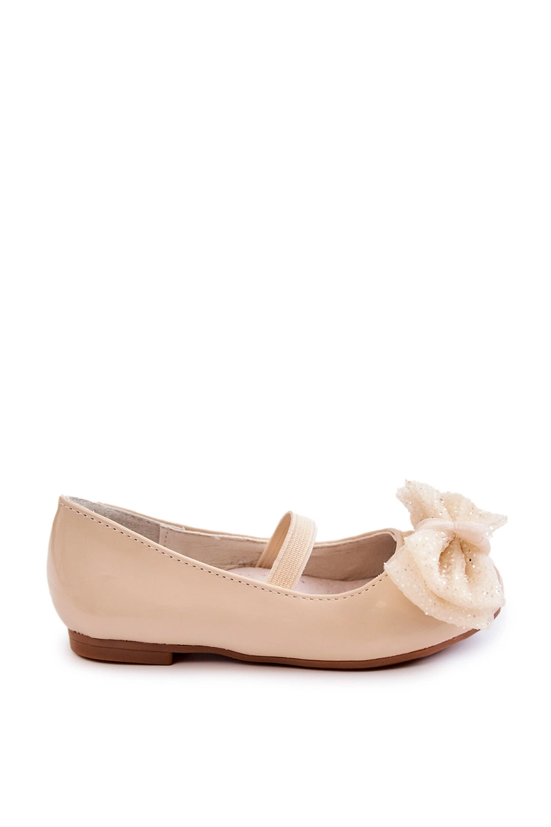 Dziecięce Lakierowane Balerinki Z Kokardą Beżowe Zolly