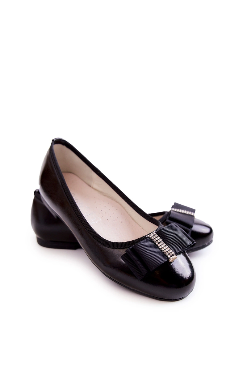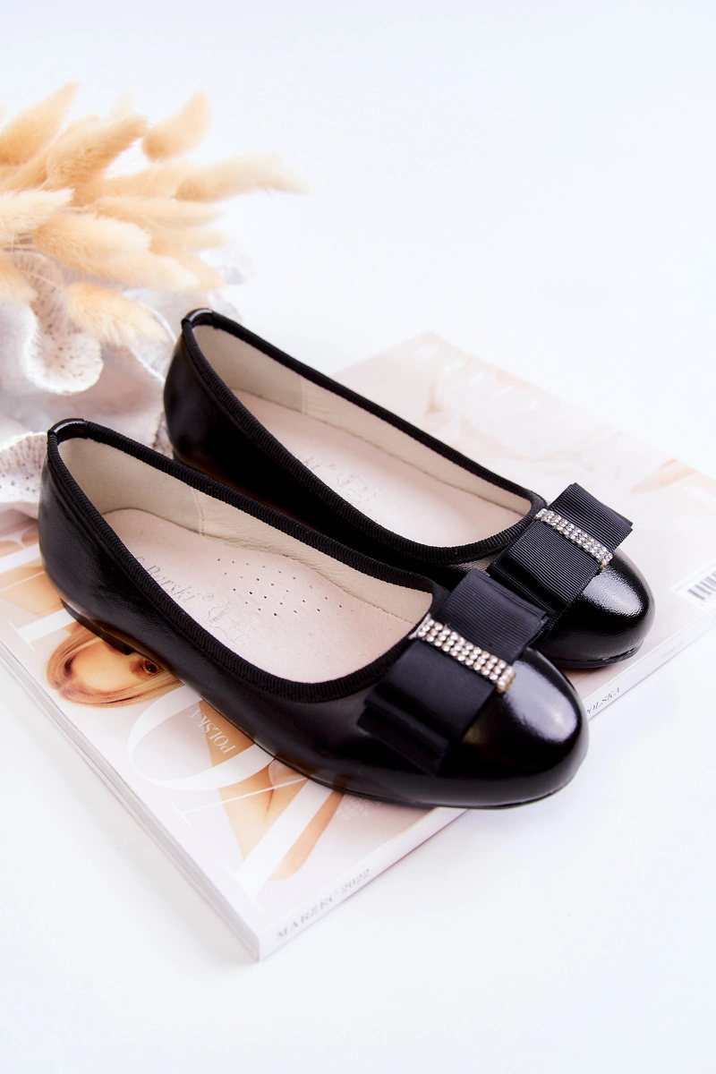 Skórzane Dziecięce Baleriny Z Ozdobną Kokardą Czarne Claril