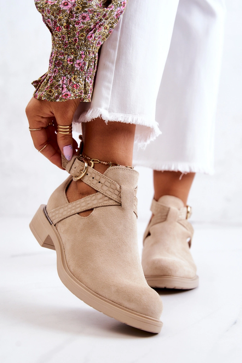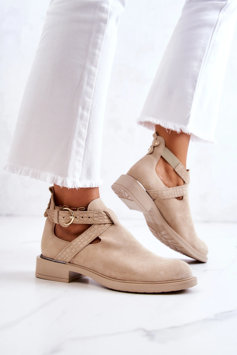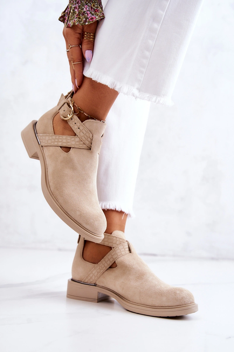 Damskie Skórzane Botki Z Wycięciem Jasnobeżowe Ramos