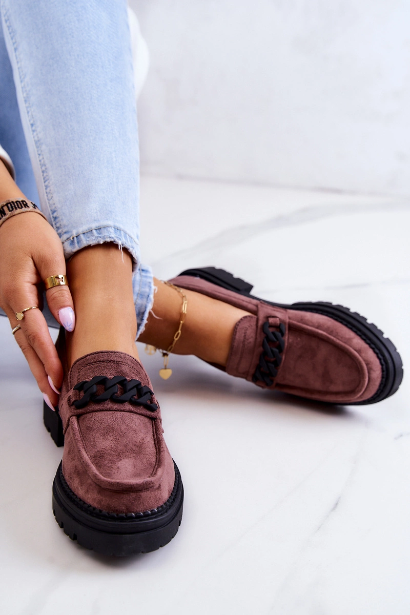Klasyczne półbuty w stylu przepięknych loaferów marki Laura Fiore! Buty zostały wykonane z wysokiej jakości zamszowej eko skóry. Charakterystyczne zdobienie w postaci łańcucha sprawi, że stworzymy z nimi wiele wspaniałych stylizacji. Posiadają wysoką podeszwę oraz obcas, który uniesie naszą sylwetkę. Miękka wykonana z naturalnej skóry wkładka zadba o komfort podczas użytkowania obuwia. Przy wyborze rozmiaru prosimy sugerować się tabelą rozmiarów.