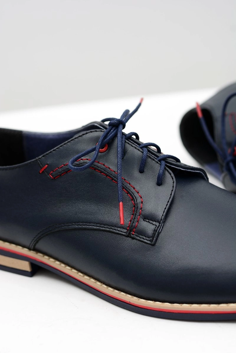 Męskie Półbuty Bednarek Eleganckie Skórzane Granatowe Pietro