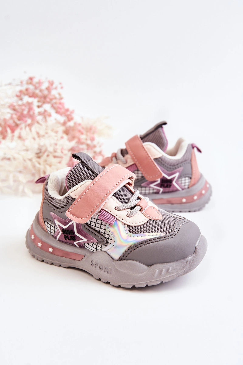 Dziecięce Lekkie Buty Sportowe Szaro-Różowe Mobby