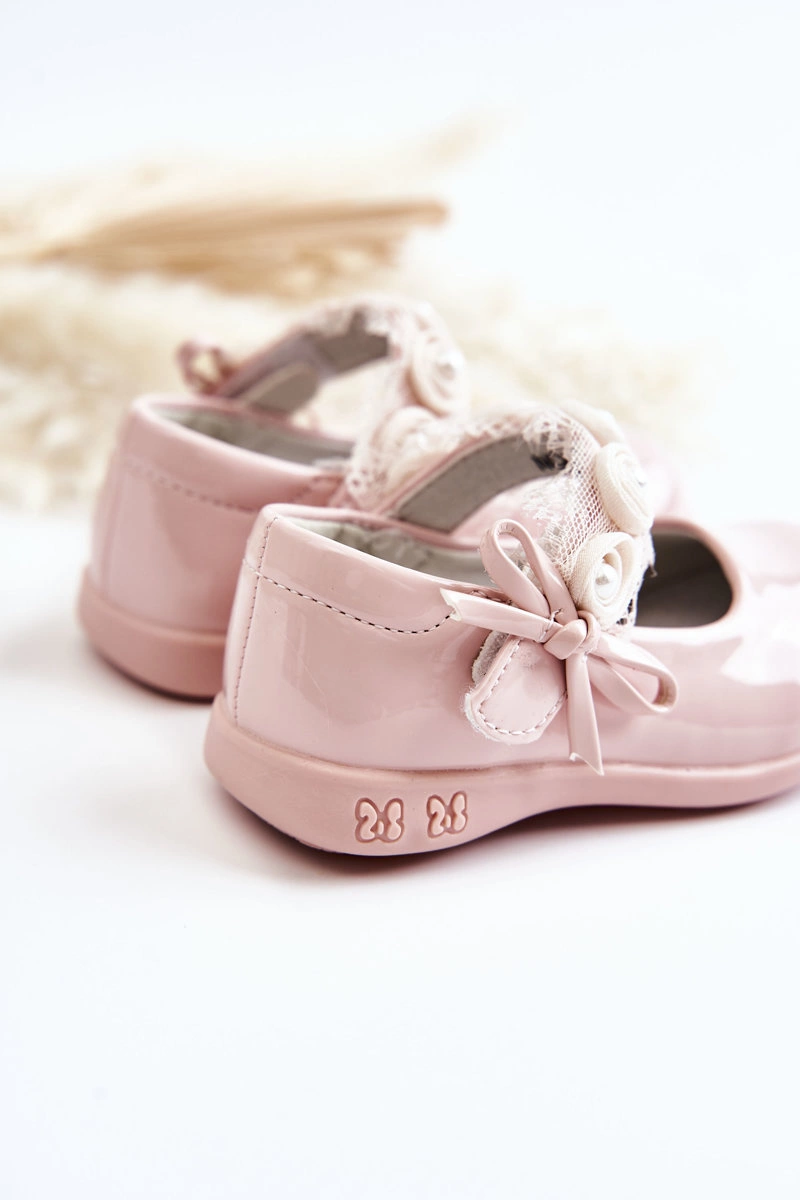 Dziecięce Balerinki Na Rzepy Z Koronką Różowe Evelyn