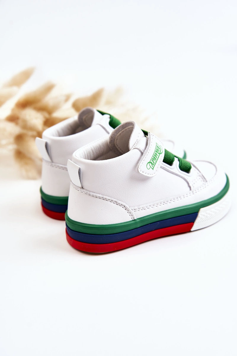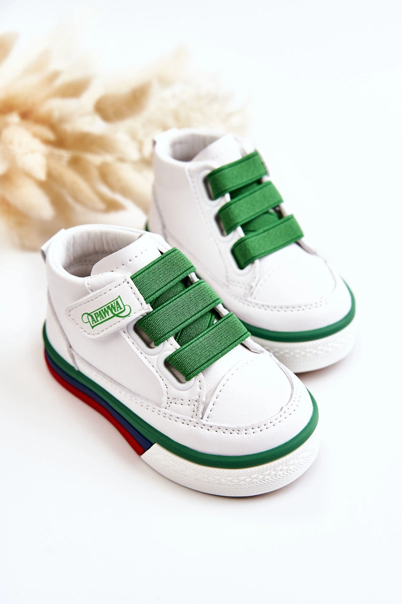 Dziecięce Wysokie Trampki Ze Ściągaczem Biało-Zielone Baxter