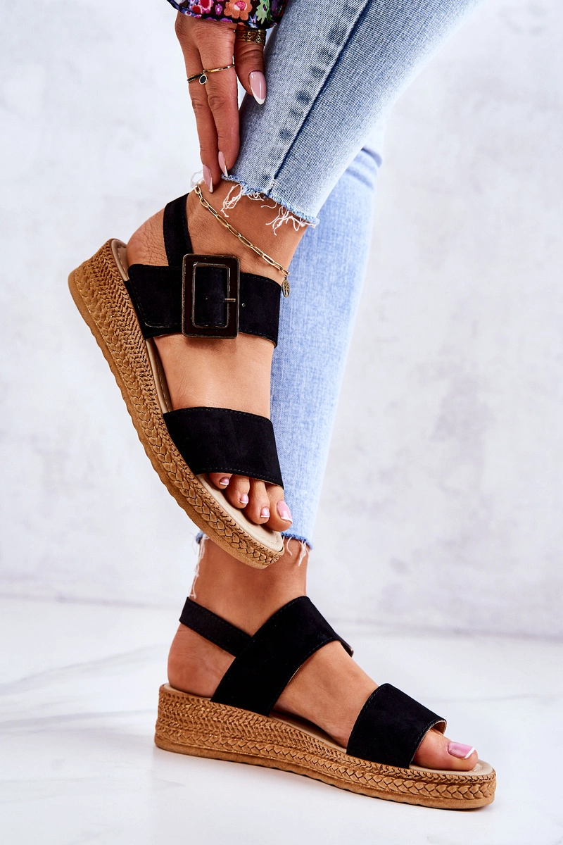 Damskie Zamszowe Sandały Big Star JJ276031 Czarne