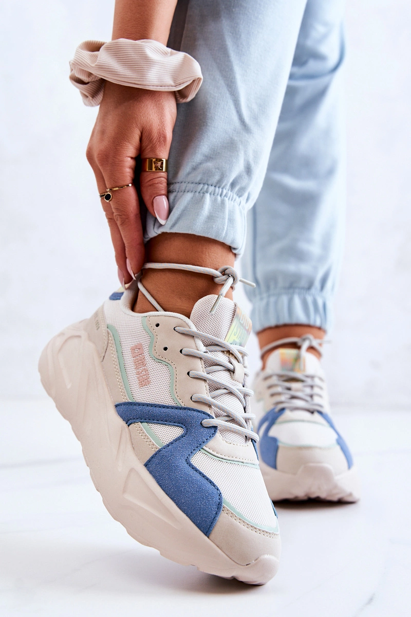 Damskie Sneakersy Memory Foam Big Star JJ274600 Beżowo-Niebieskie