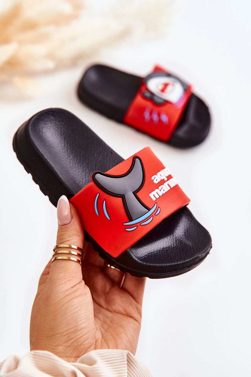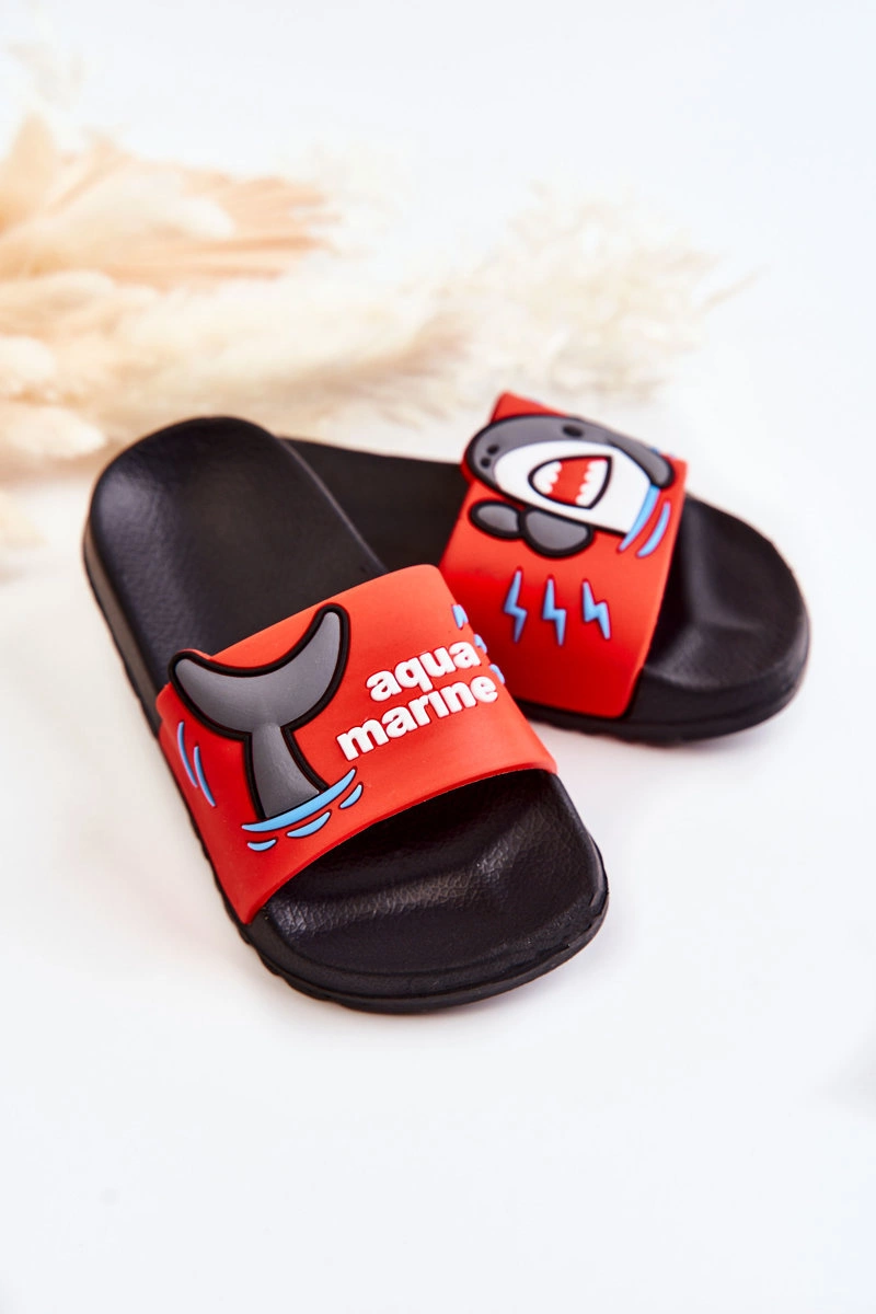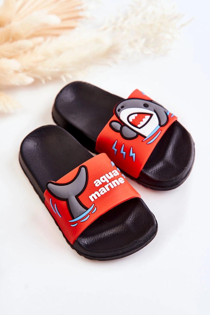 Lekkie Dziecięce Klapki Czerwono-Czarne Sharky