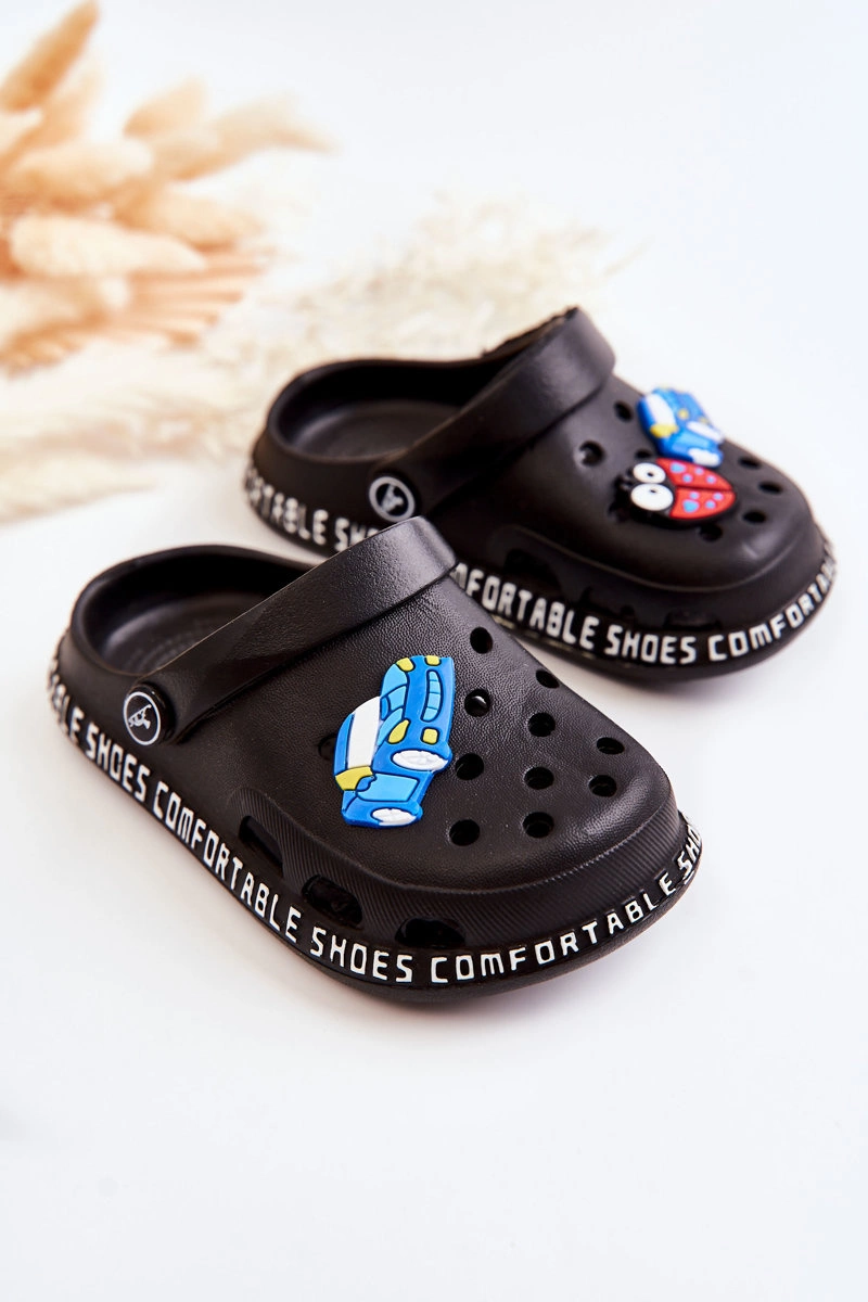 Dziecięce Lekkie Klapki Kroksy Z Ozdobą Czarne Bertis