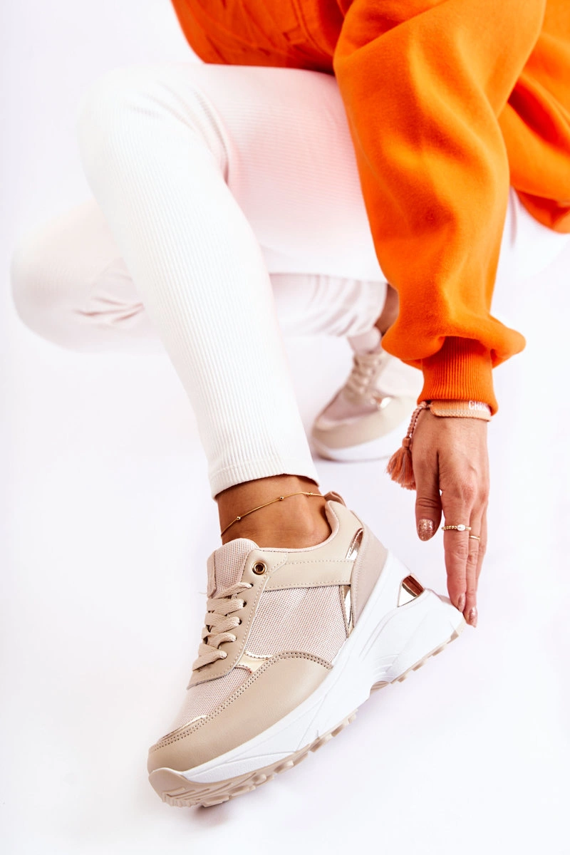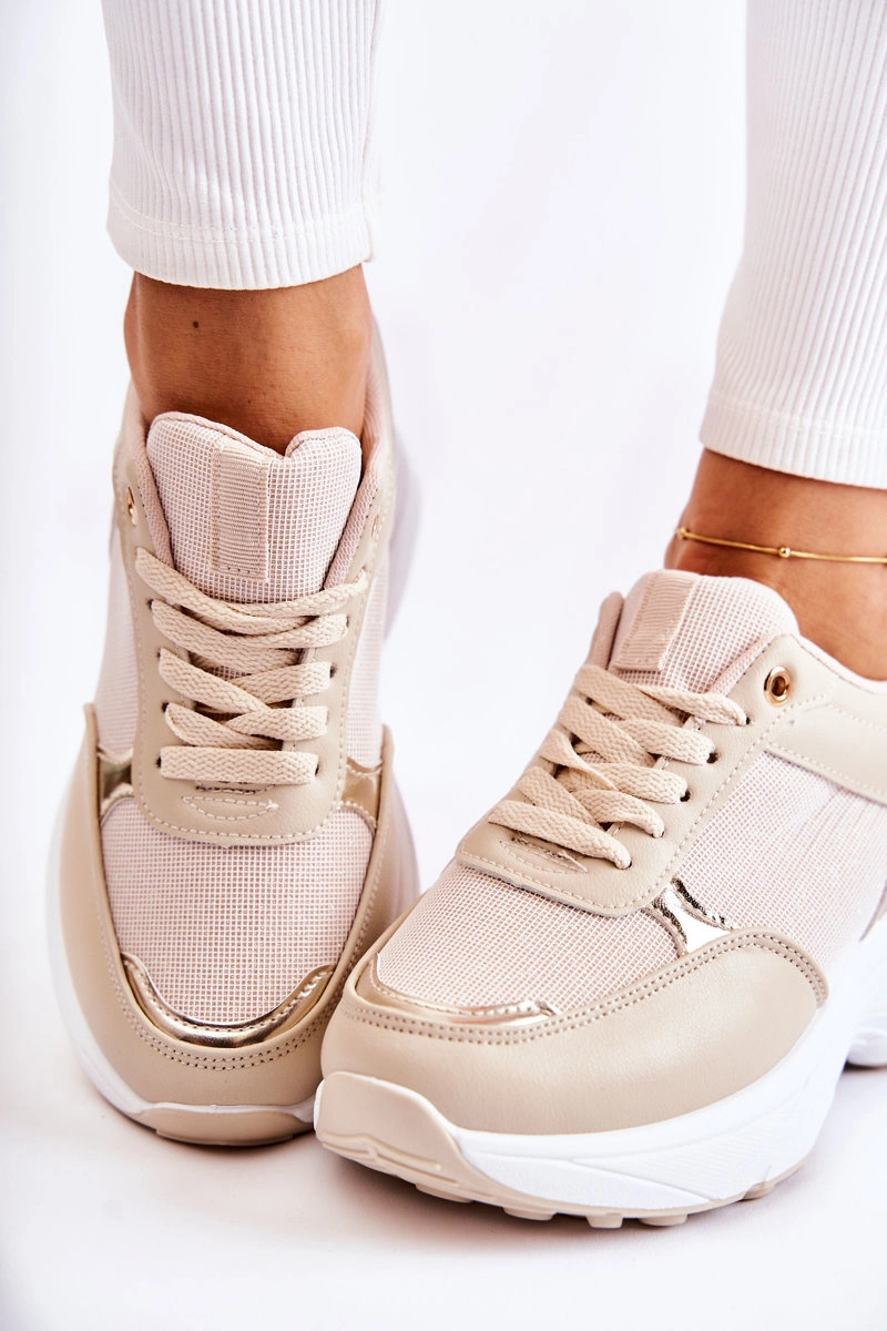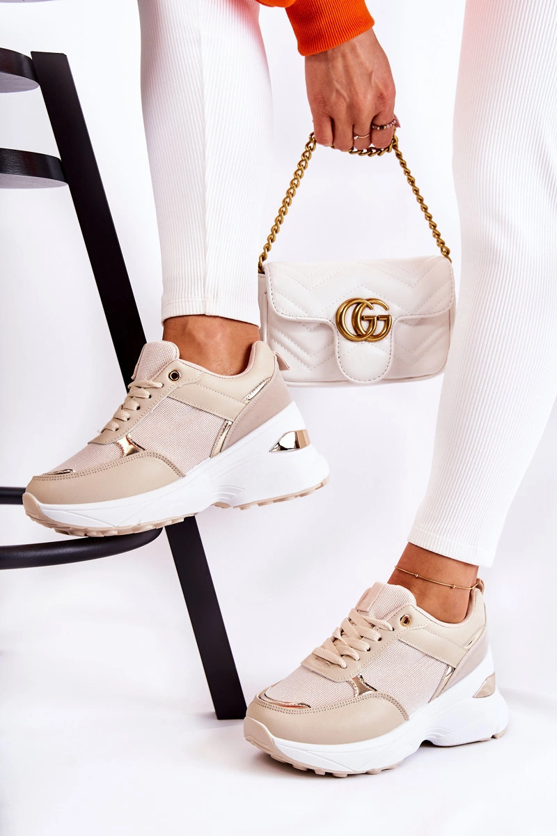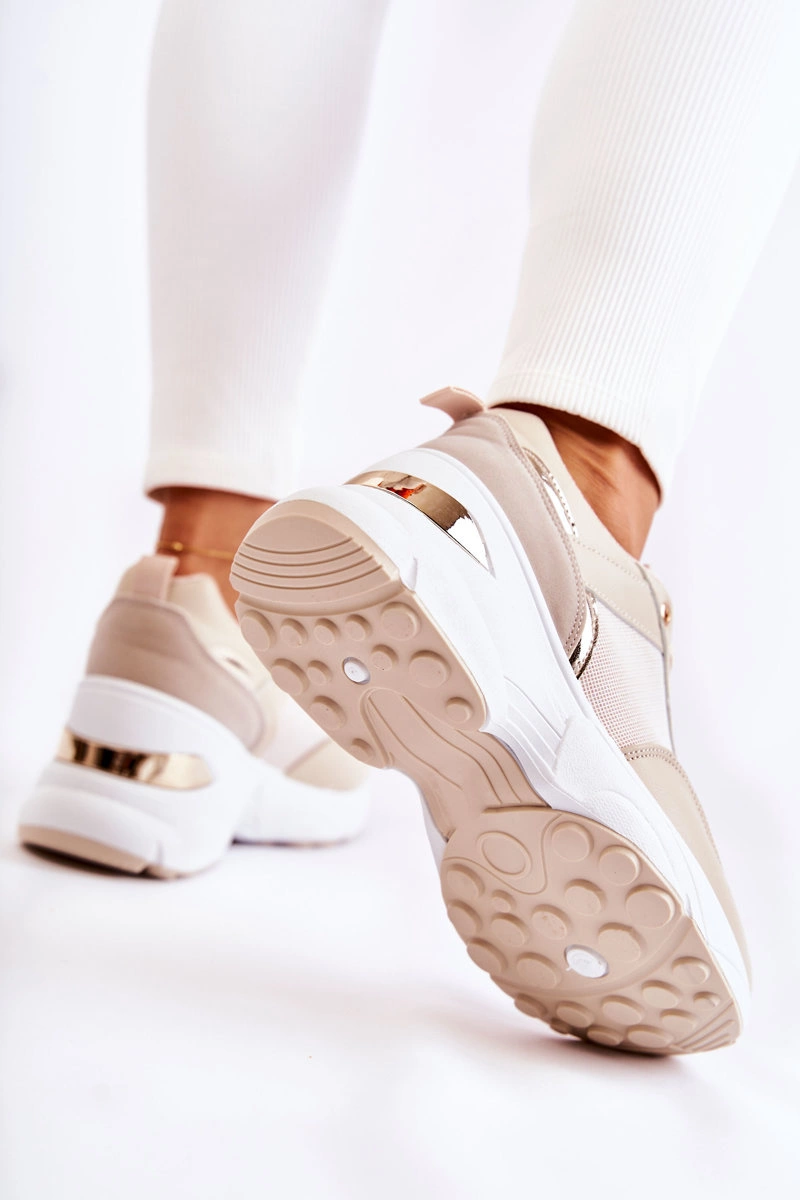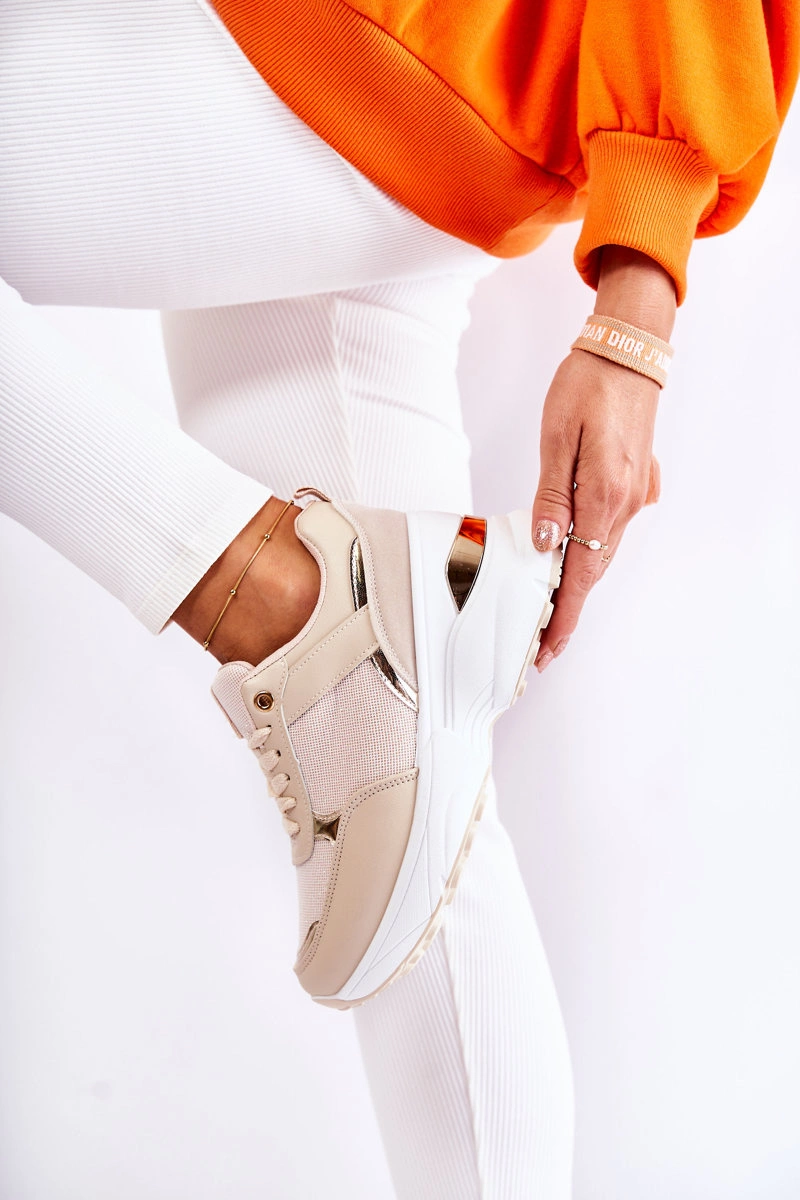 Damskie Błyszczące Buty Sportowe Na Koturnie Beżowe Activity