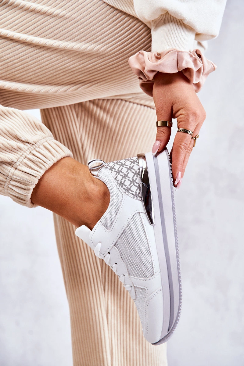Klasyczne buty sportowe wykonane z przewiewnej tkaniny wraz z eko skórą. Platforma została przyozdobiona lustrzanym elementem. Wykonana z gumowego tworzywa, antypoślizgowa. Osadzone na niewysokim koturnie. Wyciągana, materiałowa wkładka. Buty wiązane na płaskie sznurowadła. Wygodny model, idealny do codziennych aktywności. Dodatkowo z tyłu buty posiadają pętelkę ułatwiającą zakładanie i ściąganie obuwia. Koniecznie sprawdź pozostałe modele butów sportowych! Przy wyborze rozmiaru prosimy kierować tabelą rozmiarów.