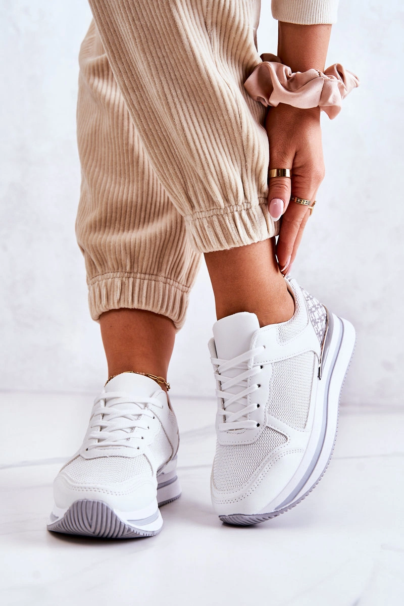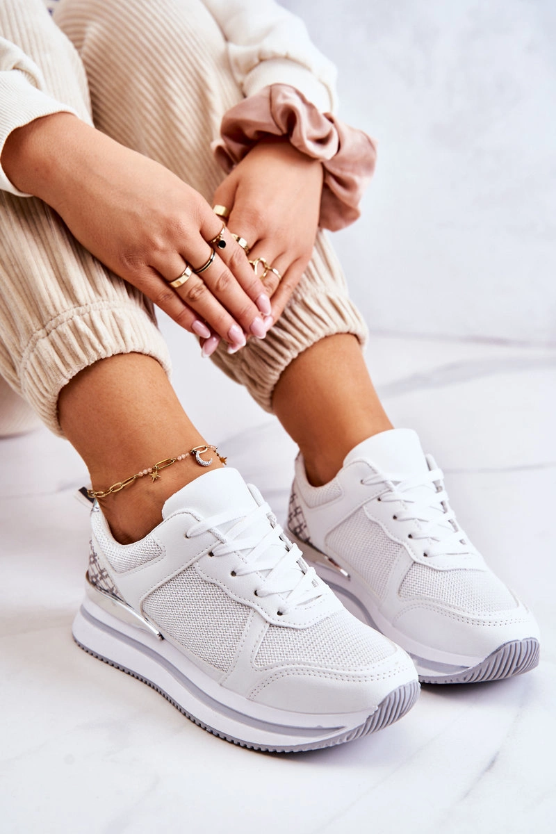 Damskie Klasyczne Buty Sportowe Na Koturnie Białe Advanced