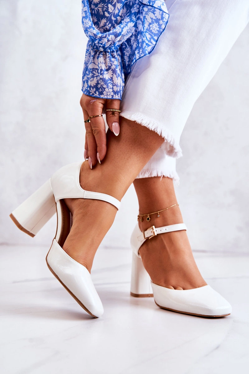 Modne Lakierowane Czółenka Na Słupku Białe Maoris