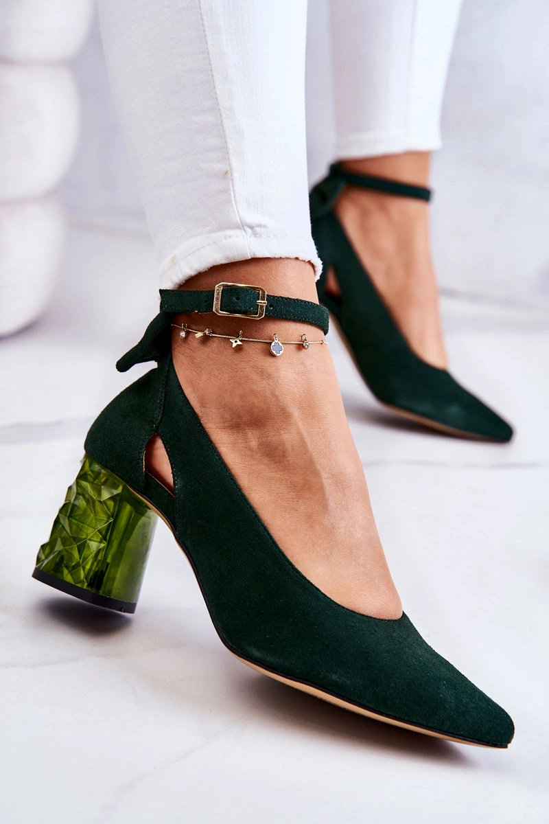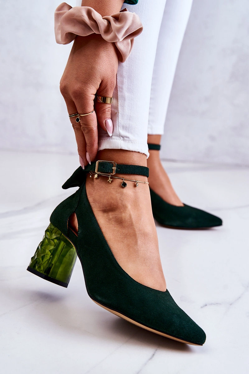 Zamszowe Czółenka Z Kokardką Maciejka 05059-09 Ciemnozielone