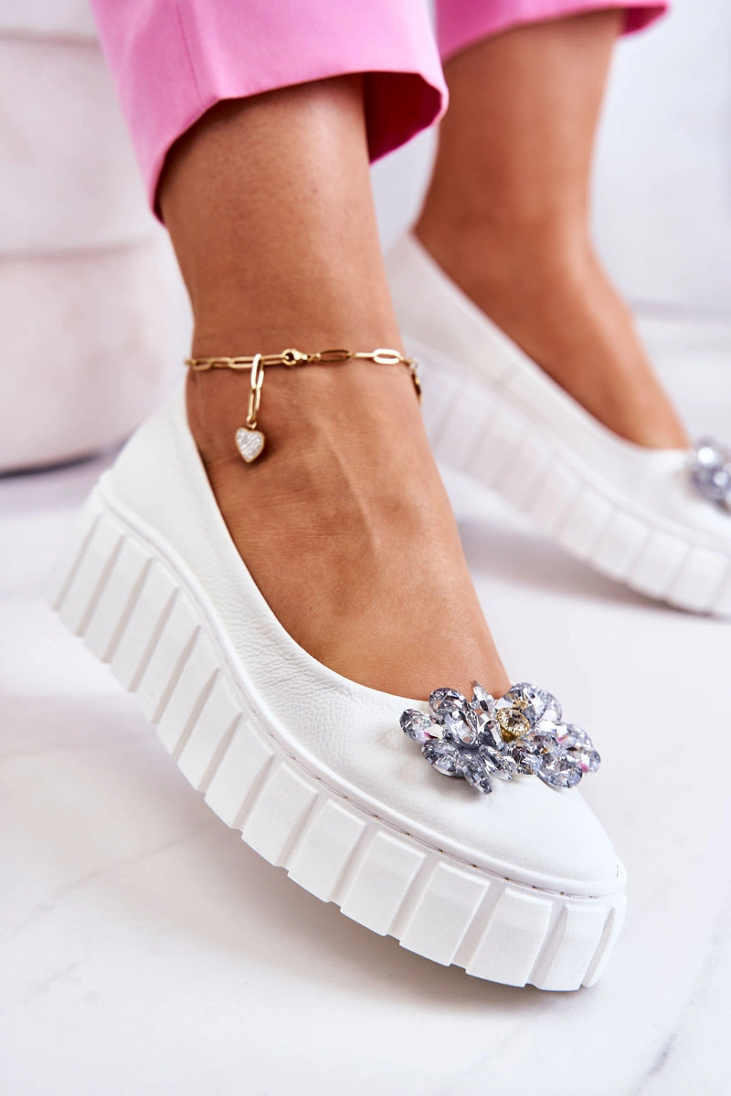Skórzane Baleriny Na Platformie Z Ozdobą Białe Ladette