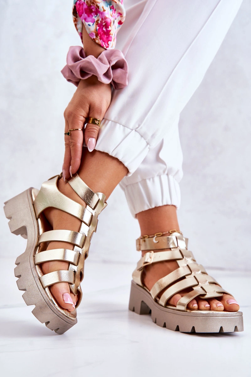 Skórzane Sandały Z Paseczkami Złote Minorite