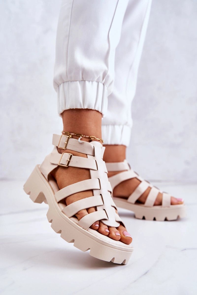 Skórzane Sandały Z Paseczkami Beżowe Minorite