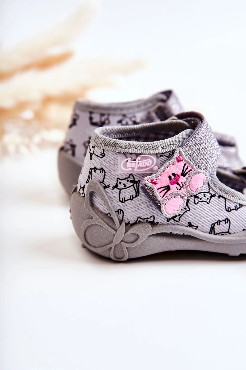 Sandałki Papcie Befado Na Rzep Kotki 242P102 Szare