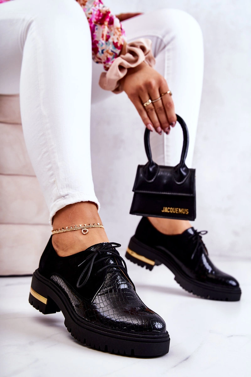 Damskie Skórzane Półbuty Wiązane Czarne Merevin