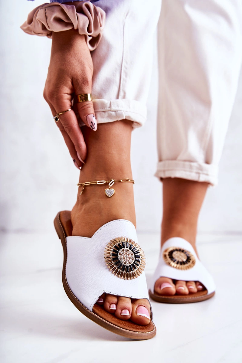 Skórzane Modne Klapki Lewski Shoes 3132/O Białe