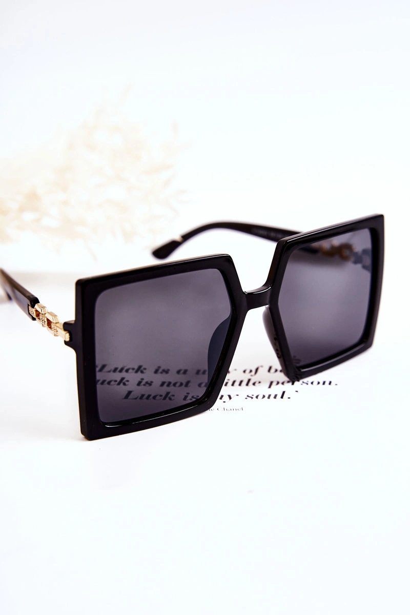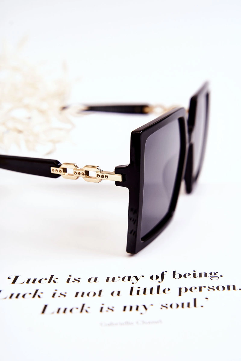 Duże Okulary Przeciwsłoneczne Kwadratowe V130043 Czarno-Złote