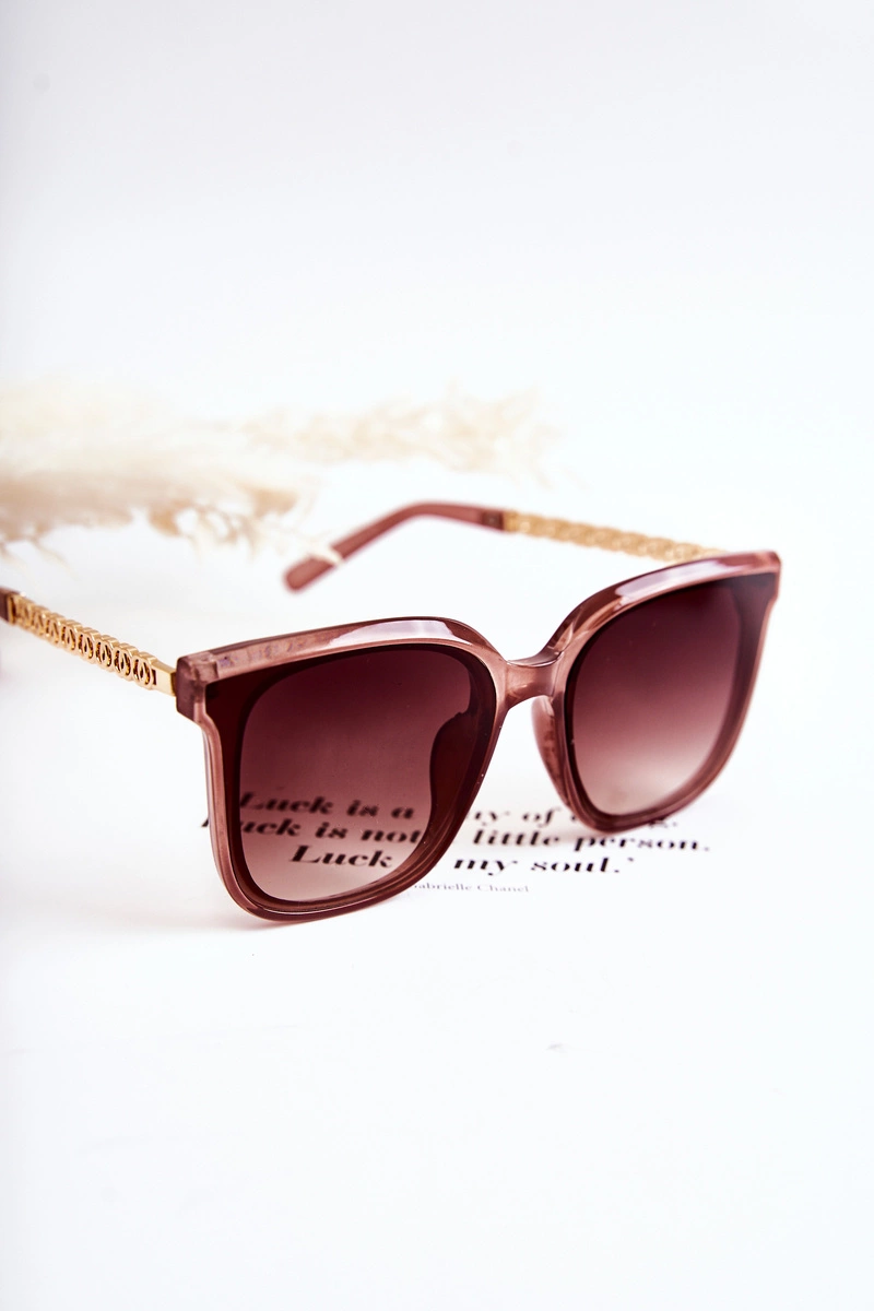 Wyjątkowe i stylowe okulary przeciwsłoneczne świetnie sprawdzą się w wielu sytuacjach! Nie tylko podczas letniego sezonu, ale także zimowego, kiedy promienie słoneczne odbijają się od śniegu. Model ten został wykonany z tworzywa sztucznego. Złota ozdoba w postaci przeplatających się kółek zdobi zauszniki. Informacja od producenta: okulary absorbują szkodliwe promienie UV, kategoria 3.