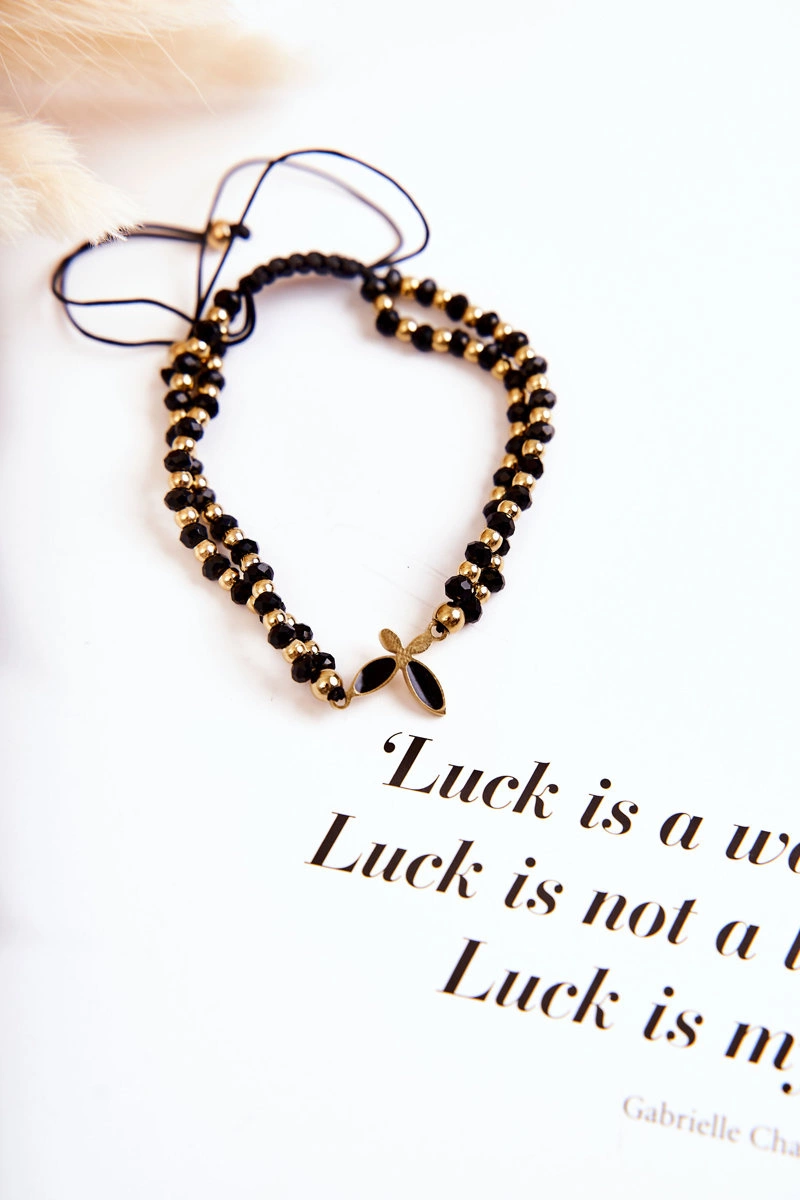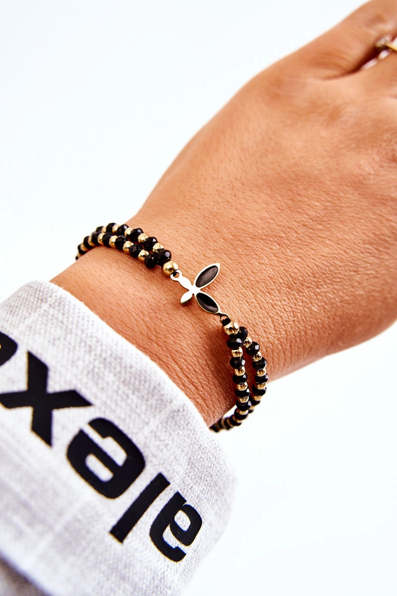 Damska Podwójna Bransoletka Z Koralikami Czarno-Złota Motyl