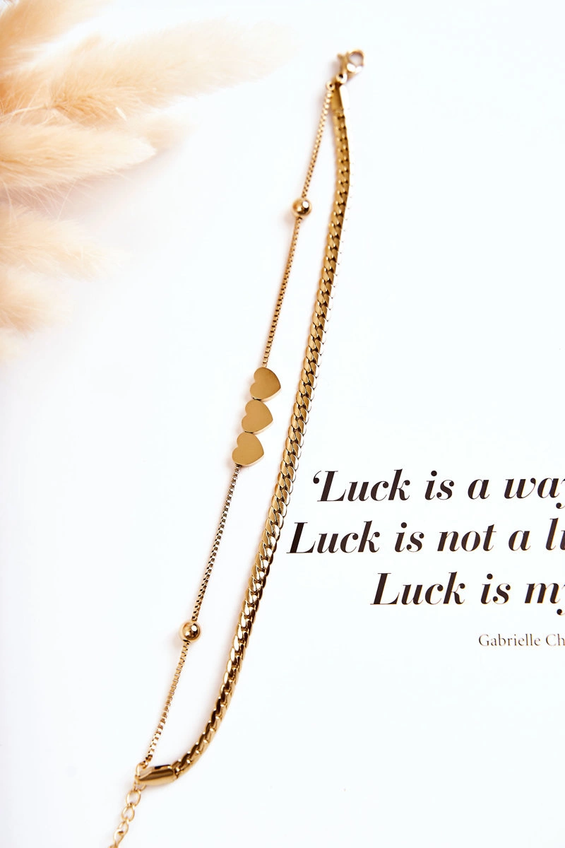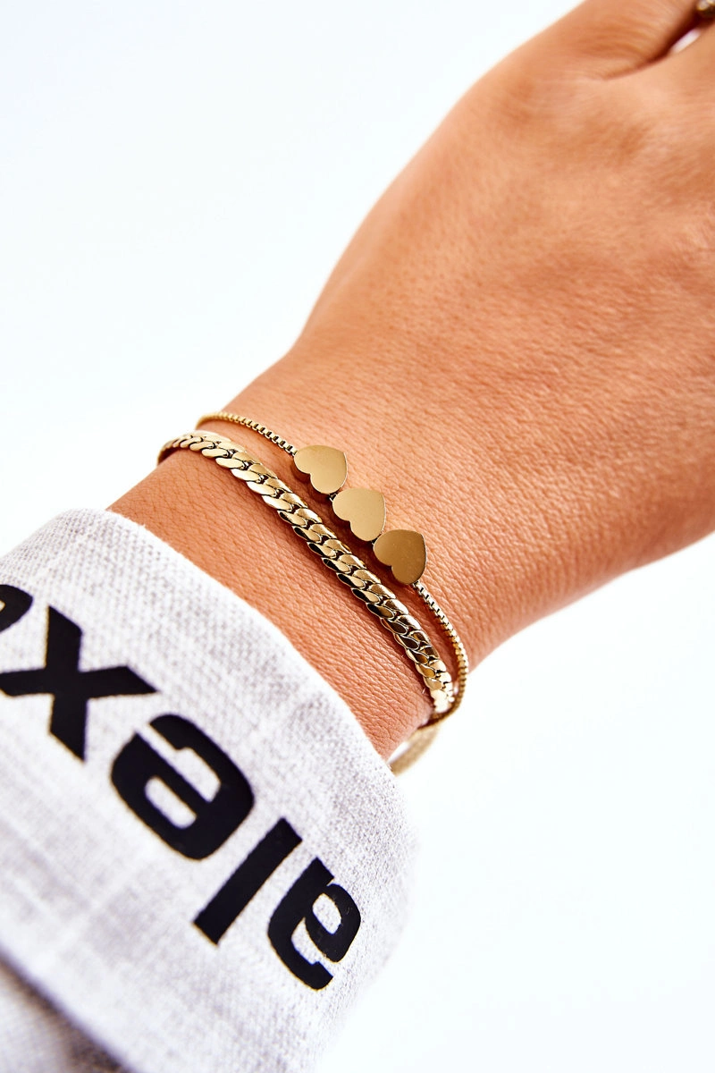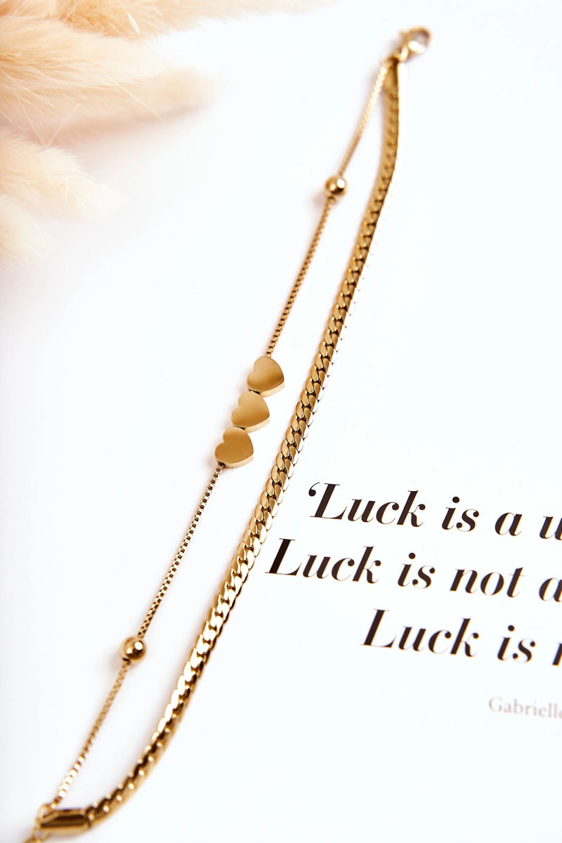 Damska Podwójna Bransoletka Trzy Serca Złota