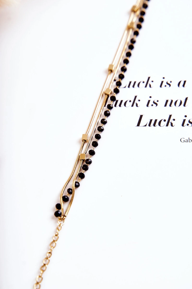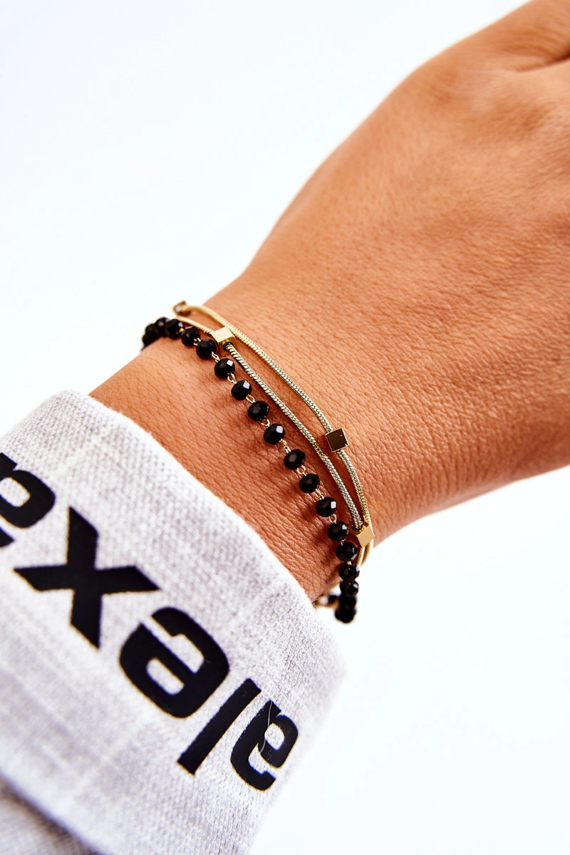 Damska Podwójna Bransoletka Mini Kwadraty Złoto-Czarna