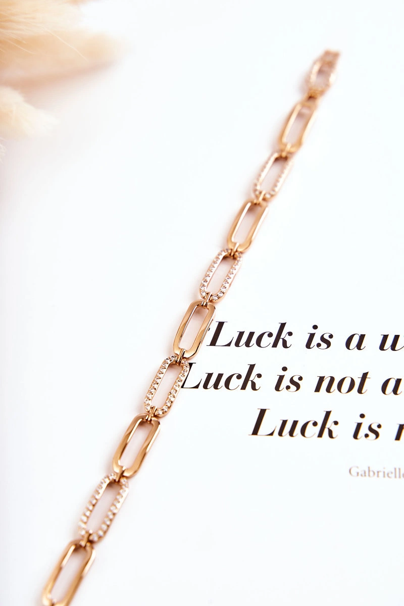 Wyjątkowa bransoletka damska wykonana ze stali nierdzewnej. Nie posiada możliwości regulacji długości. Delikatne ozdoby w postaci małych dżetów imitujących cyrkonie. Bransoletka posiada jeden pasek składający się z owalnych elementów. Prezentuje się niezwykle wyjątkowo. Zapinana na zatrzask. Koniecznie sprawdź także pozostałą naszą ofertę dostępnych modeli biżuterii. Świetny model, musisz go mieć!