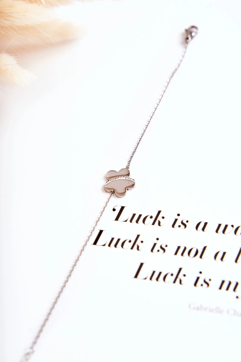 Damska bransoletka na cienkim łańcuszku wykonana ze stali nierdzewnej. Posiada możliwość regulacji długości. Na środku bransoletki znajduje się ozdoba w postaci kwiatu z małymi cyrkoniami. Taki rodzaj biżuterii jest świetnym dodatkiem do stylizacji nie tylko tych codziennych, ale i tych bardziej eleganckich. Model ten posiada klasyczne zapięcie. Koniecznie sprawdź także pozostałe modele biżuterii dostępnej w naszej ofercie!