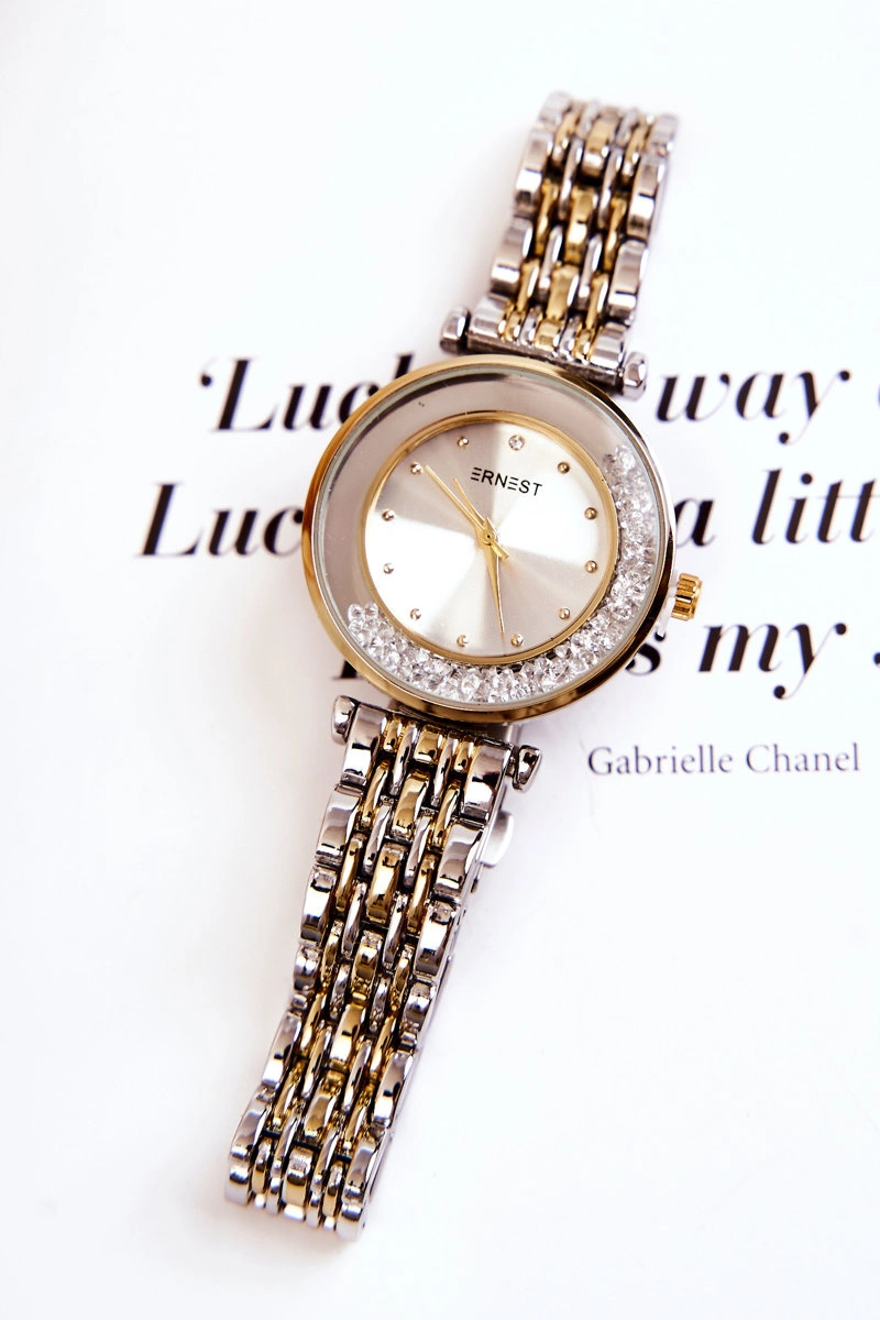 Damskie Zegarek Na Bransolecie Z Cyrkoniami ERNEST Srebrno-Złoty