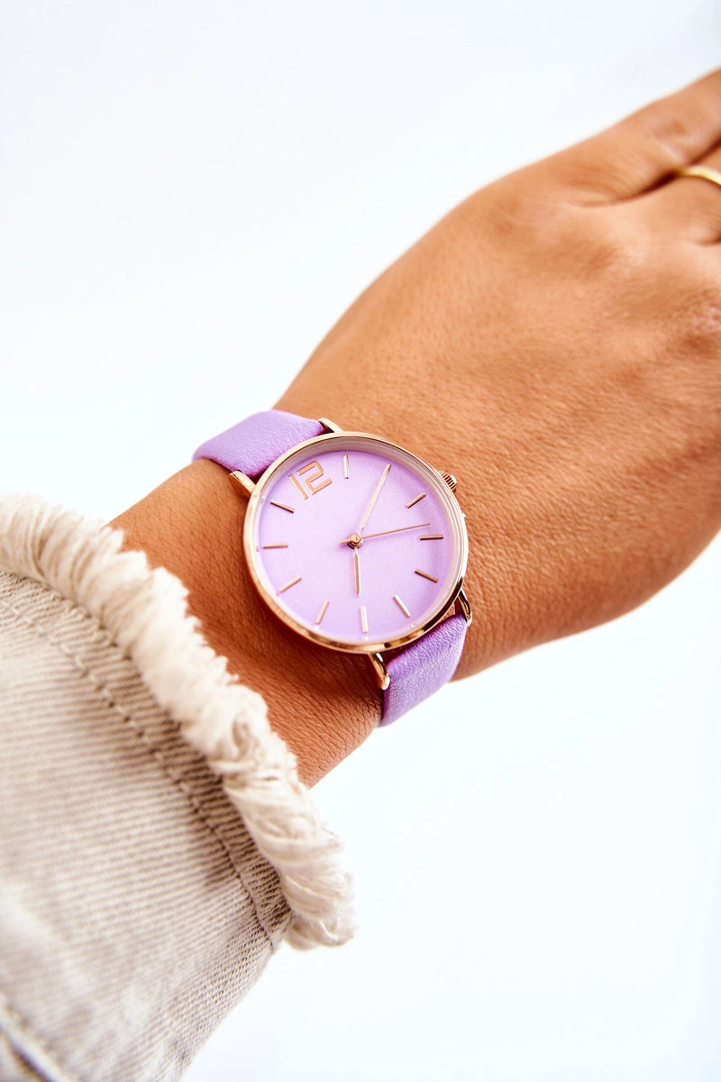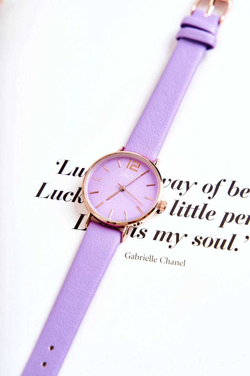 Zegarek Na Skórzanym Pasku Bez Niklu ERNEST Ciemnofioletowy