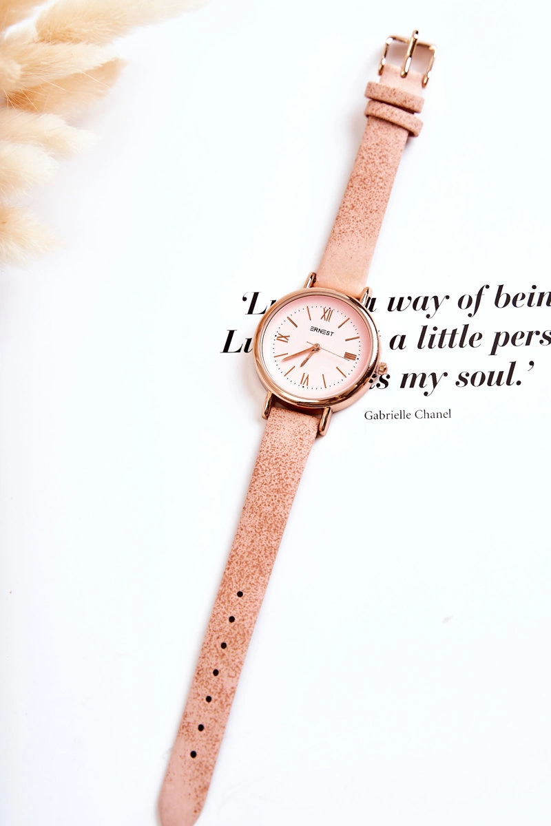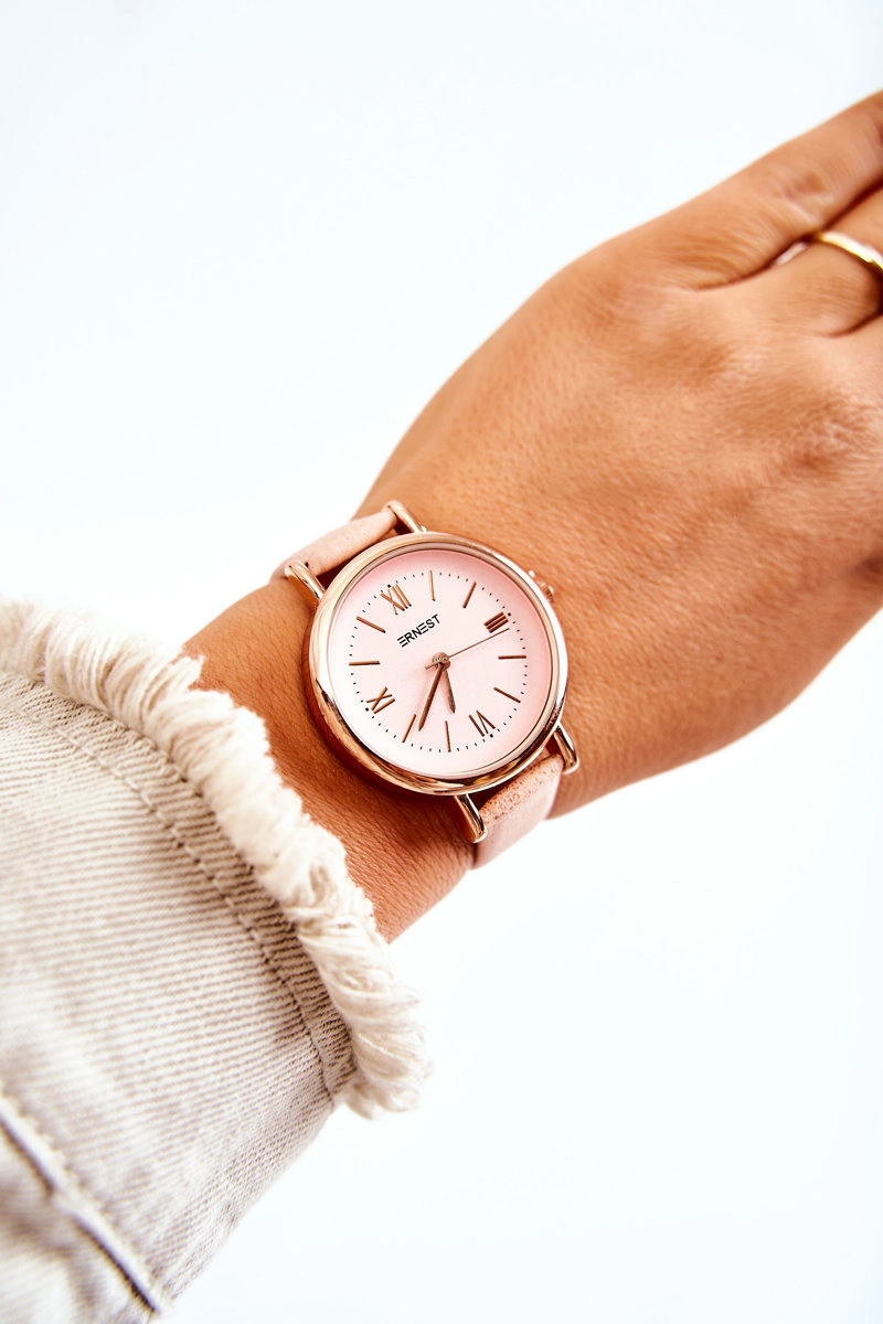Damski Zegarek Z Paskiem Ze Skóry Bez Niklu Ernest Jasnoróżowy