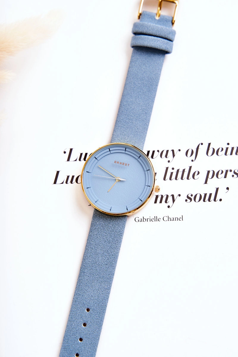Damski Zamszowy Analogowy Zegarek Bez Niklu Ernest Niebieski
