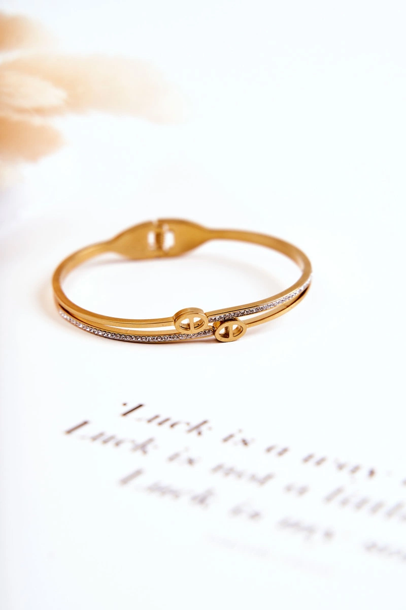 Cudowna bransoletka wykonana ze stali nierdzewnej zapinana od strony ozdoby. Posiada z tyłu sprężynkę umożliwiającą rozszerzenie bransoletki podczas zakładania. Dodatkowo została przyozdobiona cyrkoniami. Idealna na wieczorowe okazje, ale także na co dzień. Takiej bransoletki nie powinno zabraknąć w Twoich akcesoriach! Koniecznie sprawdź także inne modele biżuterii dostępne w naszej ofercie!