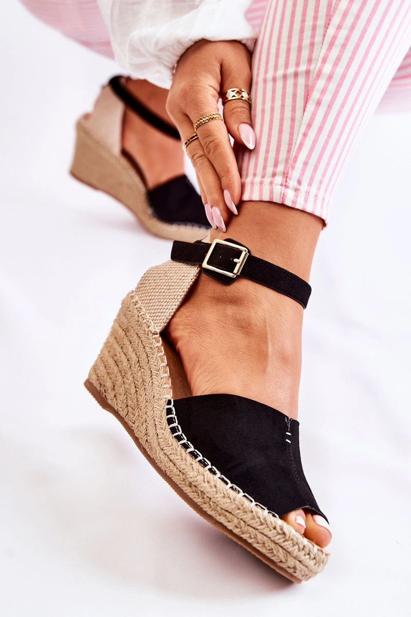 Wygodne Damskie Sandały Na Koturnie Czarne Dellia