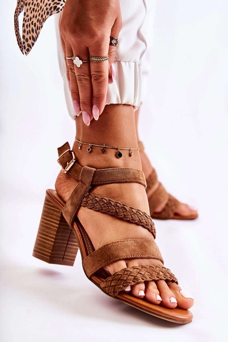 Zamszowe Damskie Sandały Na Słupku Camel Elora