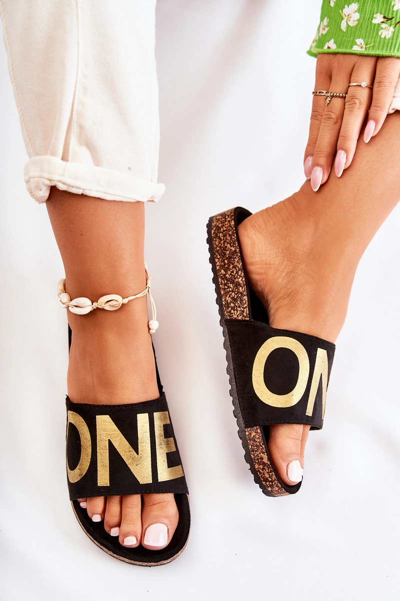Klasyczne Wsuwane Klapki Z Napisem Czarno-Złote Bahari