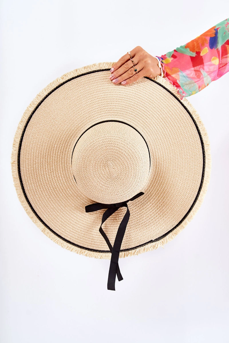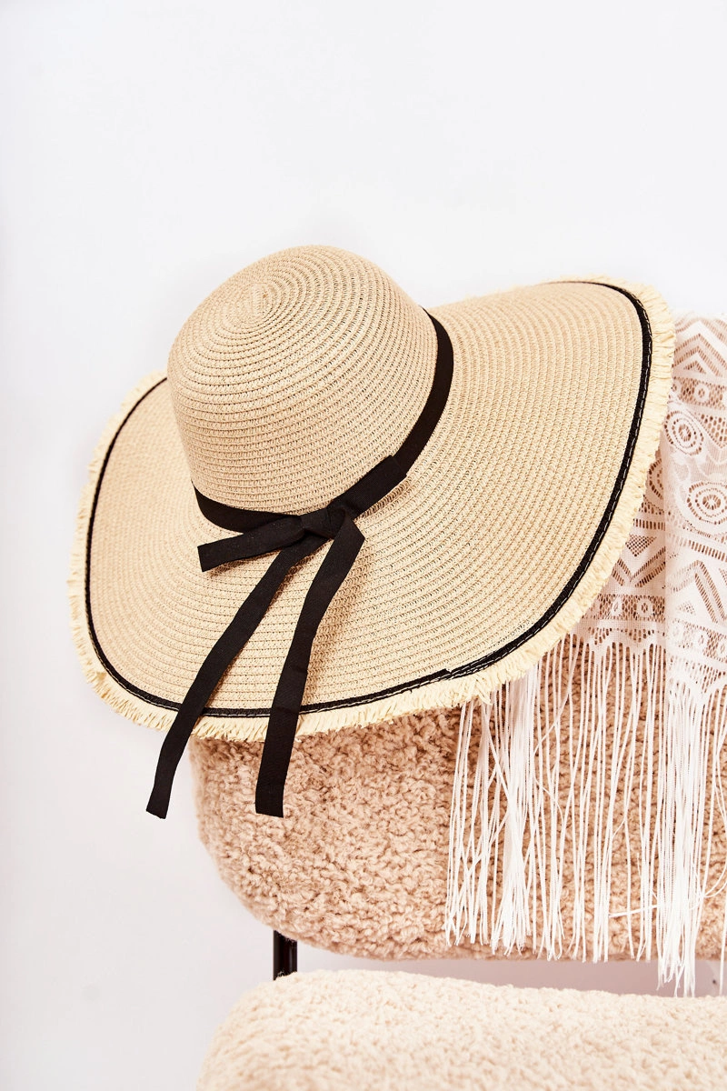 Damski Kapelusz Z Czarnym Paskiem Jasnobeżowy Mady