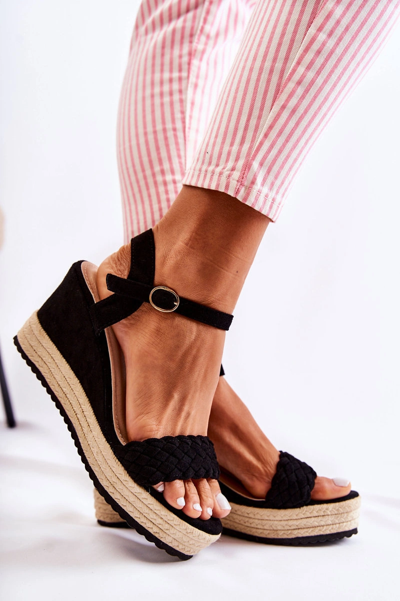 Zamszowe Sandały Na Koturnie Czarne Gabriela