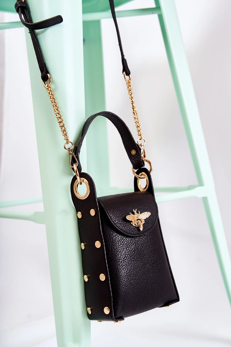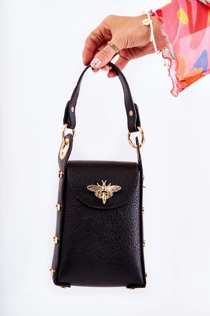 Mała torebka damska wykonana z eko skóry. Posiada nieodpinany, nieregulowany uchwyt. Komora zamykana na klapę z zatrzaskiem. Z przodu znajduje się ozdobny emblemat w postaci owada. Po bokach torebki umieszczono ozdobne ćwieki. Dodatkowo do torebki jest dołączony regulowany, odpinany pasek z łańcuszkiem. Ta torebka to hit sezonu, więc nie czekaj dłużej i kup już dziś! Sprawdź także pozostałe modele torebek dostępnych w naszej ofercie!