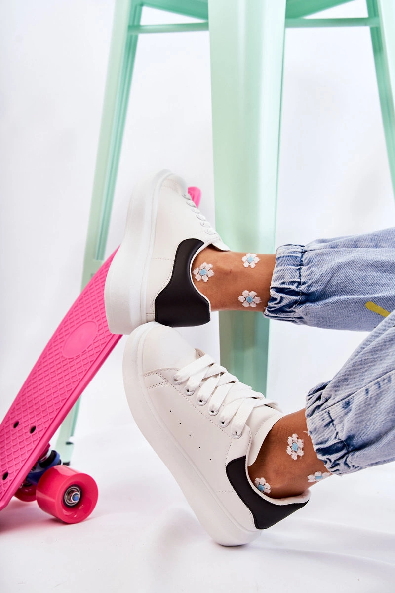 Damskie Buty Sportowe Na Platformie Biało-Czarne Eliso