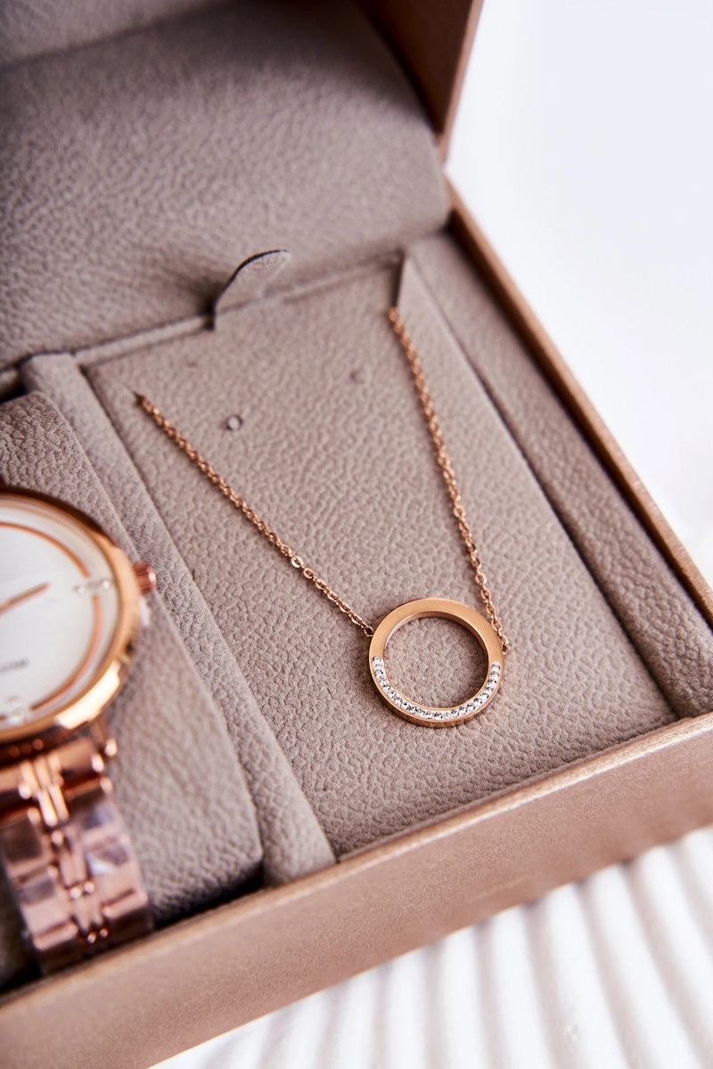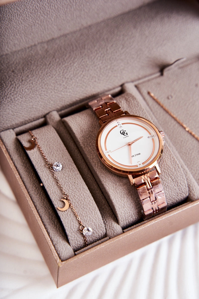 Zestaw Zegarek Bransoletka I Łańcuszek GG Luxe Różowe Złoto