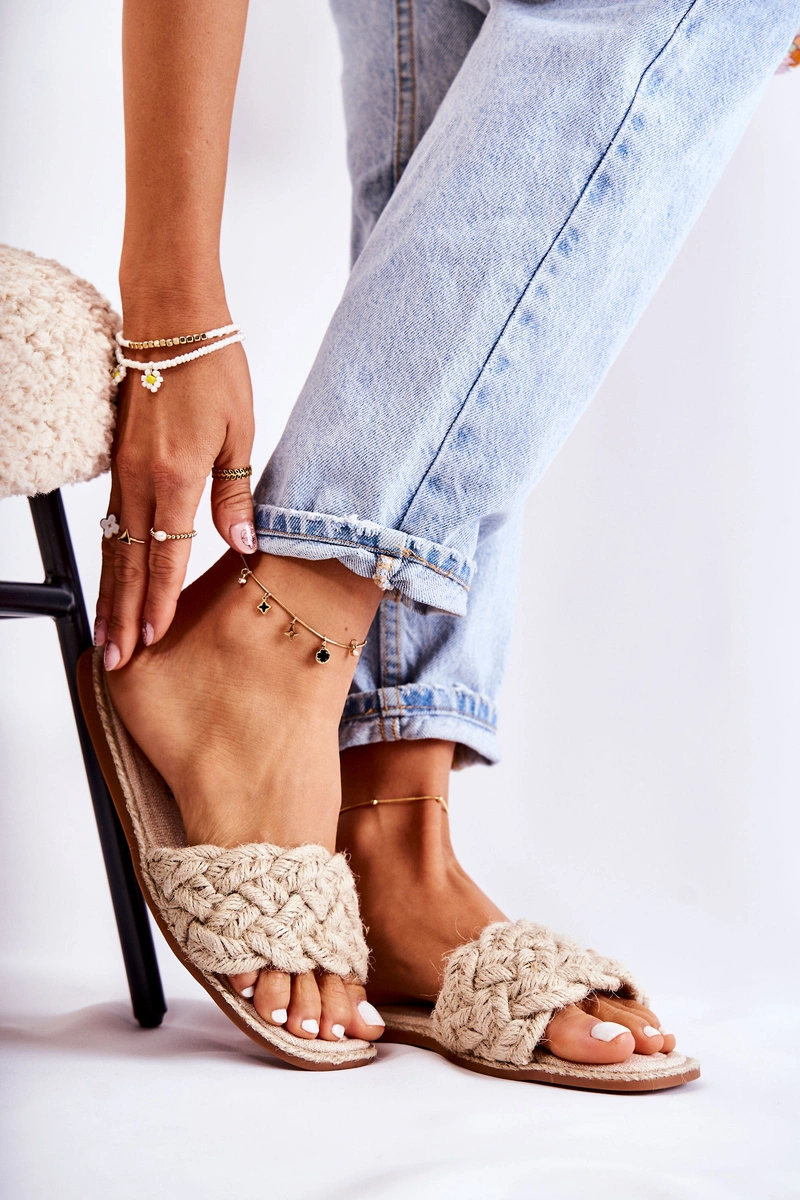 Damskie Plecione Klapki Beżowe Maraya